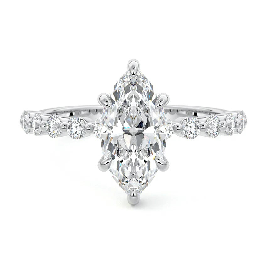 Shared Prong Hidden Halo Marquise Engagement Ring