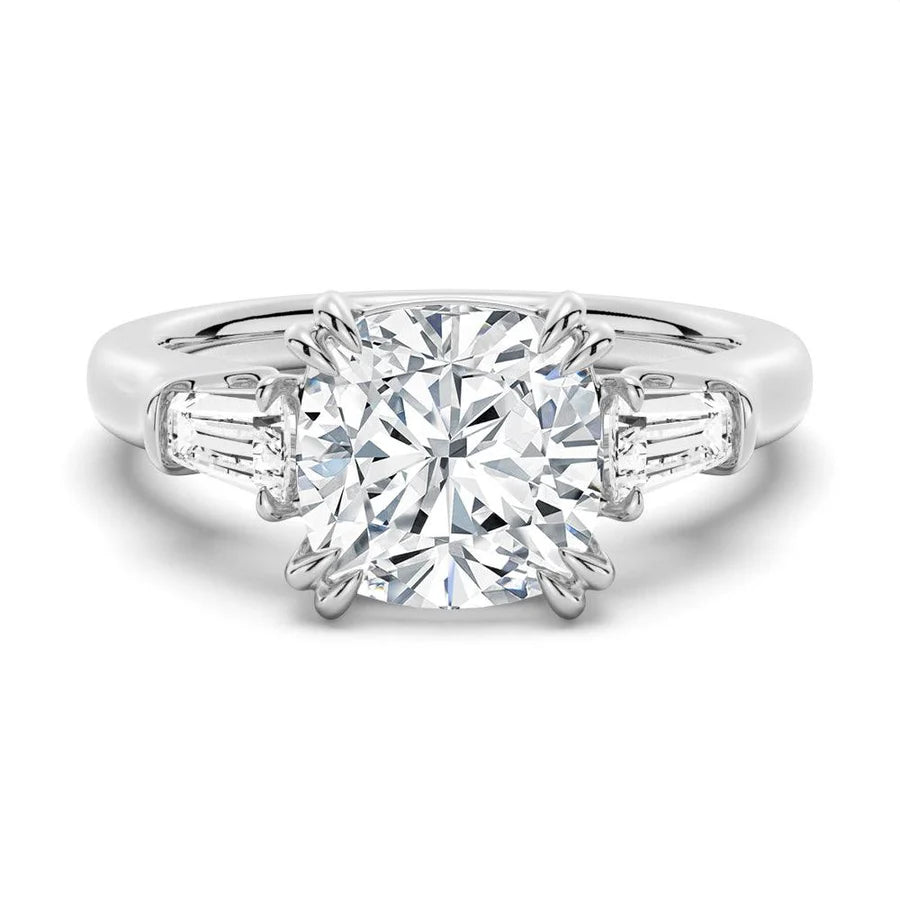 Tapered Baguette Side Stones Cushion Engagement Ring