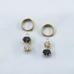 Asymmetrical Moissanite Earrings - Round Moissanite and Oval Blue Moissanite