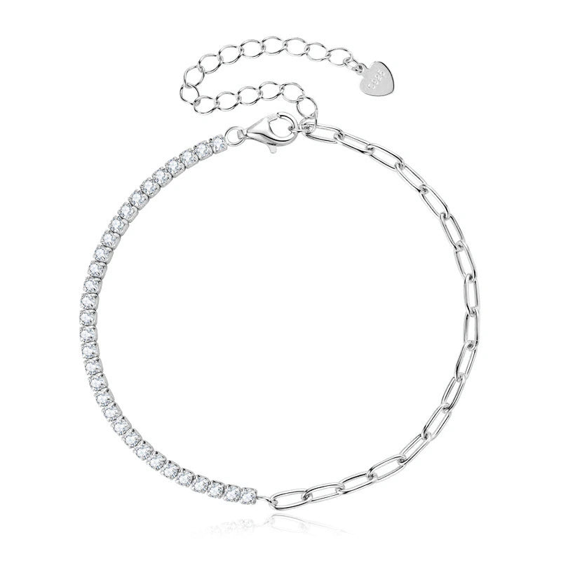 Halbe Büroklammerkette, halb Tennis-Moissanit-Armband